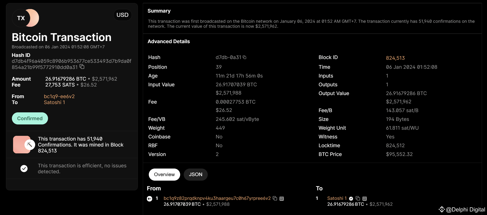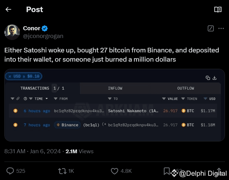 Either Satoshi woke up, bought 27 Bitcoin, and sent them there, or someone accidentally or intentionally burned over 1 million USD.