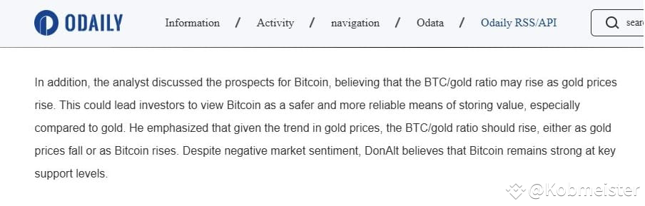 ➢ ODAILY Planet News reports that cryptocurrency analyst DonAlt shared his insights on X regarding Bitcoin's future. He suggested that as gold prices increase, the BTC/gold ratio could also climb. This shift might encourage investors to see Bitcoin as a more secure and dependable store of value in comparison to gold.💰