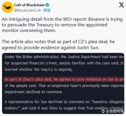 这场争议的背景是币安重新努力重建其在美国的地位。包括首席执行官理查德·滕(Richard Teng)在内的公司领导层最近与美国财政部官员会面,力促减少或取消目前监督其反洗钱控制措施的独立监督机构。该监督机构是币安在2023年认罪后达成的43亿美元和解协议的一部分,此前币安承认允许其平台上进行非法金融活动。