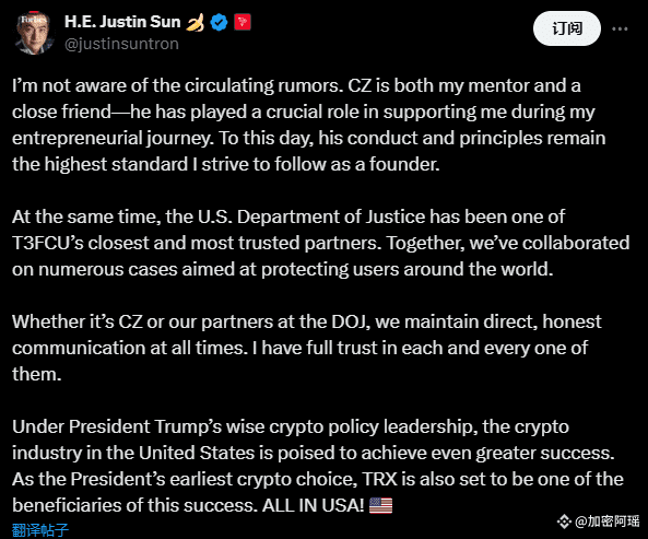 然而,孙宇晨对此回应称,这些指控“毫无根据”,并公开为赵长鹏辩护,称他既是导师,也是密友。他强调,波场与美国司法部保持着诚实直接的沟通,并赞扬了特朗普总统在加密货币领域的领导力,表达了对美国市场的信心。