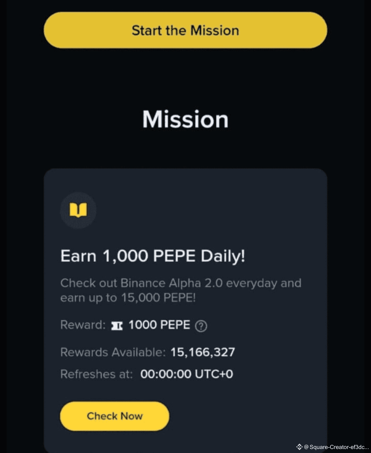 Look for the “Earn 1,000 PEPE Daily” banner inside Alpha 2.0