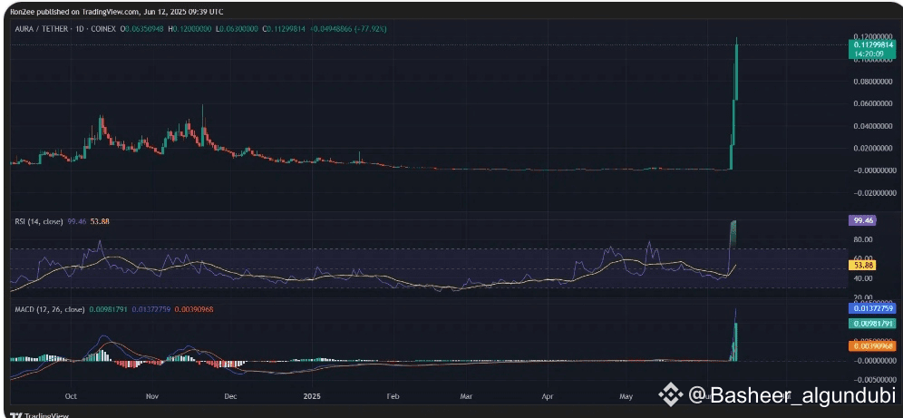 سعر AURA، ومؤشر القوة النسبية (RSI)، ومؤشر MACD - ١٢ يونيو