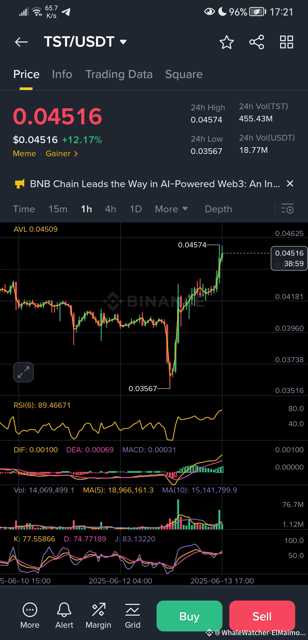 ✅ ارتداد ناري! بعد الهبوط إلى $0.03567، شهد TST ارتفاعًا حادًا إلى $0.04574، بزيادة تفوق +12% خلال 24 ساعة! إشارة قوية على عودة الثقة والزخم الشرائي.