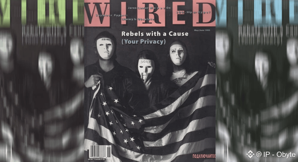 Hughes, Gilmore, and May were the masked individuals in the cover of Wired, Feb 1993. Image by CryptoArtCulture