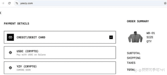 甚至 Kanye 自己的 Yeezy 官网也已经上线了 YZY 支付选项,看上去相当正式。