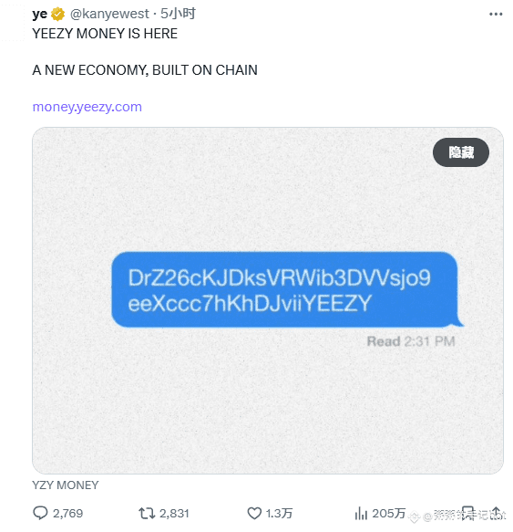 早间,他在推特直接公布了 #YZY 代币的合约地址。