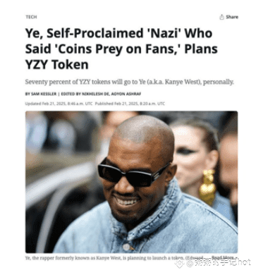#KANYEWEST 又一次站上了风口浪尖,只不过这次不是在音乐圈,而是在加密世界。曾经口口声声说“不会发币欺骗粉丝”的侃爷,今天亲手打了自己的脸。#名人MEME热潮