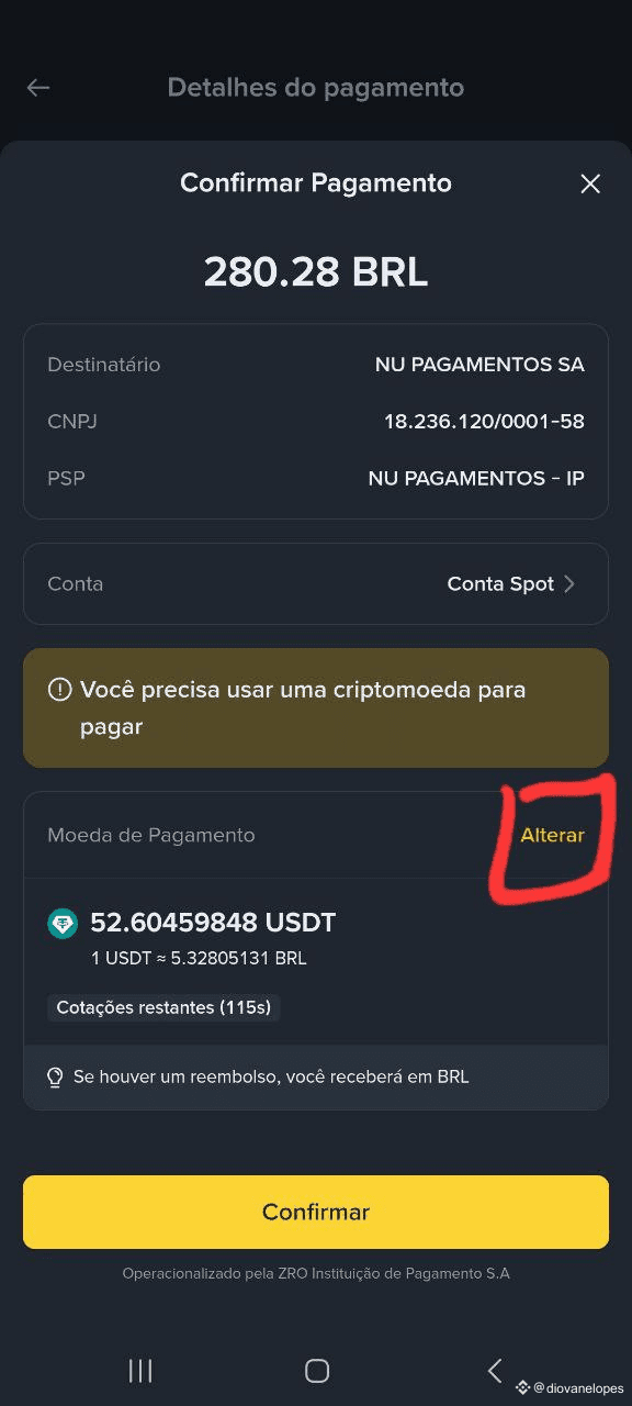 3.Escolha a Cripto: Você seleciona qual criptomoeda do seu saldo quer usar para o pagamento ($USDT , $BTC , $BNB , etc.).