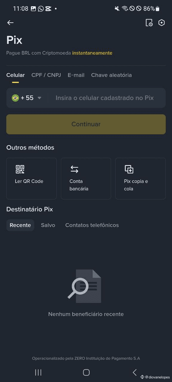 A Binance tem uma função de PIX que pouca gente explora, e ela resolve exatamente esse problema. Com ela, você pode pagar a fatura do seu cartão de crédito (ou qualquer outra conta com código PIX) diretamente com o saldo que você tem em cripto na plataforma.