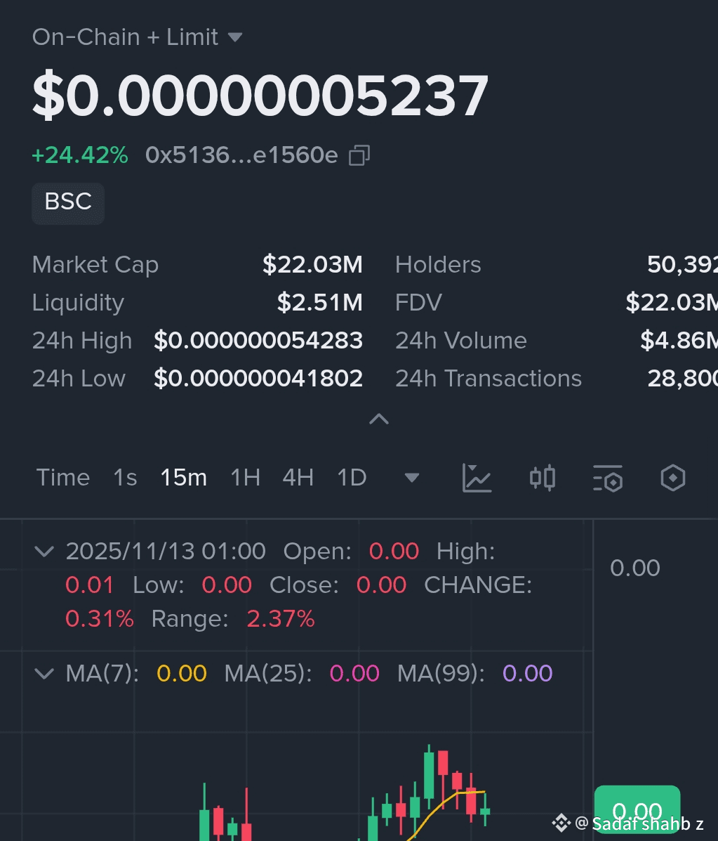 $BOB is showing powerful bullish momentum, holding steady around $0.000000075 after a massive surge of over +13% in the past 24 hours. Traders and holders are watching closely as momentum continues to build — signaling that the next leg up could be explosive!