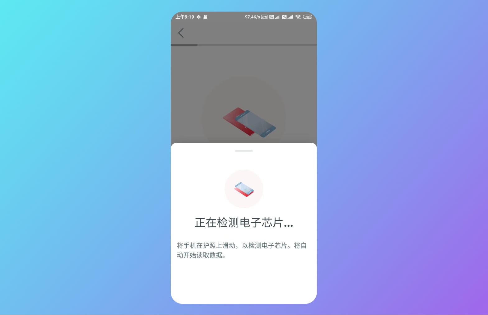 Během čtení dat aplikací se zobrazí vyskakovací okno s upozorněním na detekci. V tuto chvíli se nehýbejte a počkejte na dokončení čtení.