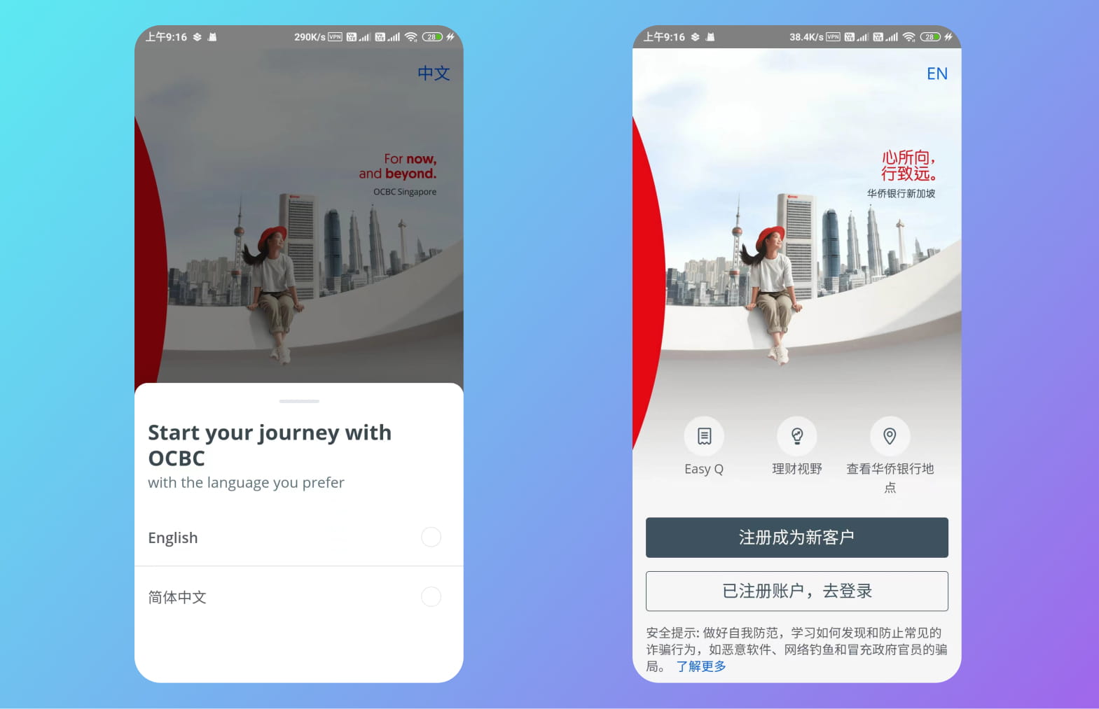 Uživatelé systému Android mohou vyhledat OCBC na Google Play a stáhnout si OCBC Digital - Mobile. Uživatelé systému iOS mohou vyhledávat přímo v obchodě.