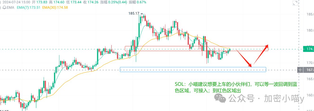ETH: Po včerejším uvedení spotového ETF na burzu Erbian včera udělal silný pohyb až na úroveň 3530 a poté se po dlouhém a krátkém přetahování lanem vložil kolíky nahoru a dolů a uzavřel zápornou K linii. Z denní úrovně je aktuální dvoudílný koláč v rozsahu Fibonacciho 50%-61,8% retracementu a odpovídající bod je v rozsahu 3390-3530. Celkový trend je převážně medvědí, pokud klesne pod 3380, krátkodobý cíl je 3250.