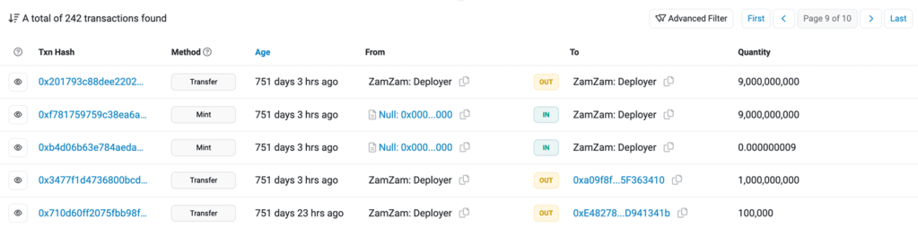 Chcete-li tuto podvodnou metodu odhalit, můžete přejít na stránku smlouvy o tokenu a prozkoumat transakce. Pokud je nalezena ikona s nápisem „Mint“, znamená to přítomnost této technologie ve smlouvě o tokenu. Níže uvedený obrázek poskytuje příklad této technologie „Mint“.