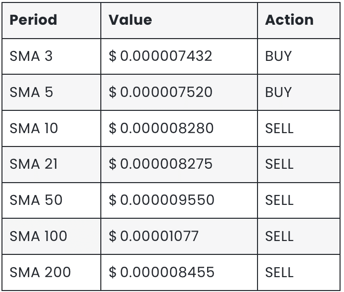 Hodinový cenový graf potvrzuje, že se Pepe pokouší klesnout pod bezprostřední linii podpory; býci však v nadcházejících hodinách očekávají další zotavení. Pokud se ceně Pepe podaří udržet momentum nad 0,00000861 USD, podnítí to býčí růst k 0,00000991 USD.