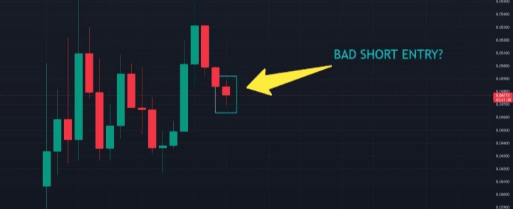 Narazili jsme na někoho, kdo provedl 50x pákový obchod s marží 100 USD. Byl jsem si jistý, že trh okamžitě klesne, protože na grafu byly 3 maxima a většina svíček, které lze vidět, je medvědích. Po vstupu do krátkého obchodu si uvědomíte, že trh se pohybuje jinak a dosahuje vaší vypořádací ceny. Litoval svého obchodního rozhodnutí a šel spát. Po pár dnech zkontroloval stejný altcoin a tam uviděl ohavnost. Stejný altcoin, který vstoupil do krátkého obchodu poté, co předpověděl, že padne, a přijal jeho likvidaci. Spadl tak hluboko, že mu spadla čelist.