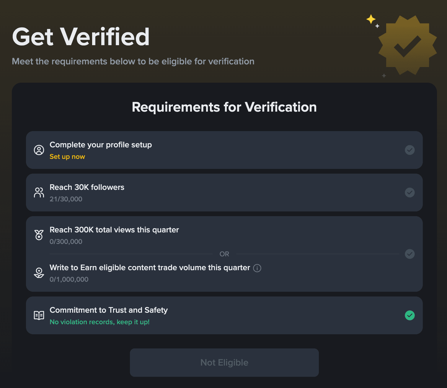 Aktivita: Musíte být aktivní s pravidelným zapojením a příspěvky na Binance Square.