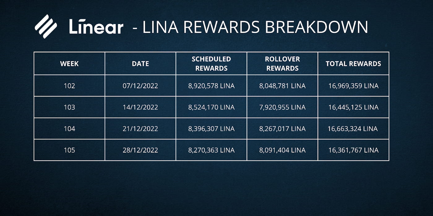 Níže uvedená tabulka vám poskytne přehled o odměnách LINA během prosince.