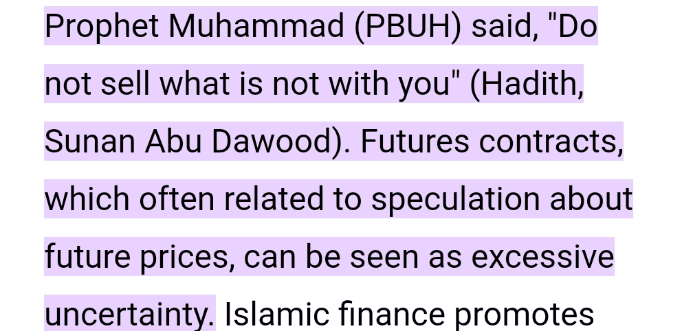 Hlavní věc, která dělá budoucí obchodování Haramem, je úschova aktiv. Pákový efekt je za určitých okolností povolen, protože je jako úvěr. V islámu nemůžete nic prodat, než vezmete majetek do své úschovy nebo jej vezme váš zástupce do své úschovy. Prorok Muhammad صلى الله عليه وسلم řekl: