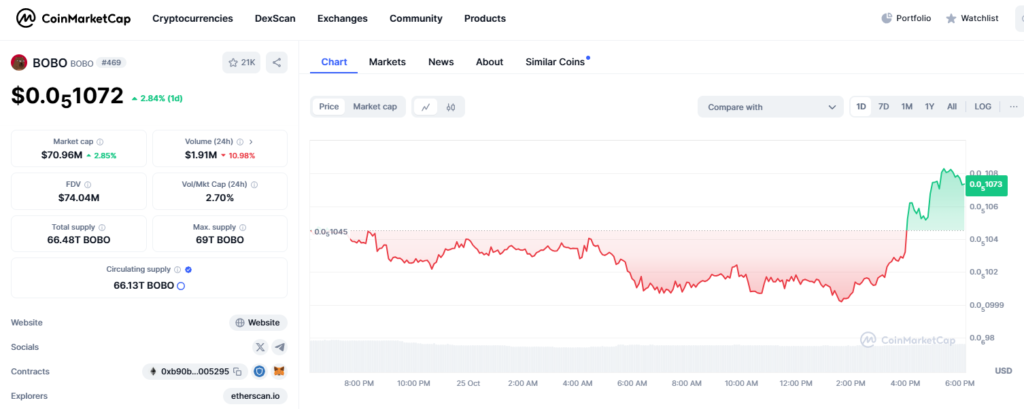 Poutavé branding Bobo Coin a potenciál pro technický růst činí z něj primárního kandidáta na explozivní zisky. Více investorů hledá jedinečné tokeny se silnou podporou komunity. BOBO by mohl dosáhnout 100x návratnosti v roce 2025. To z něj činí jeden z nejlepších memecoinů, na které se zaměřit.