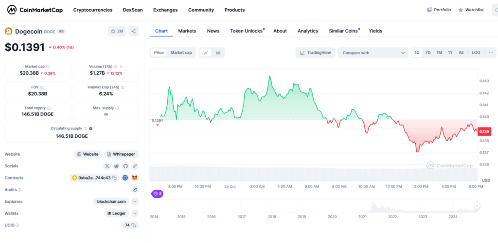Dogecoin, první memecoin, opět získává pozornost, jak se cena Bitcoinu blíží jeho historickému maximu. Mnozí si myslí, že pokud Bitcoin překročí hranici 70 000 USD, Dogecoin by mohl vzrůst spolu s ním. Pozitivní buzz na sociálních médiích již zvýšil cenu DOGE a někteří odborníci, jako kryptoanalytička Ali, věří, že by mohla dosáhnout 10 USD, pokud tento momentum pokračuje. Ačkoli nedávná analýza od CoinCodex naznačuje možný krátkodobý pokles na 0,122 USD, dlouhodobé prognózy zůstávají optimistické.