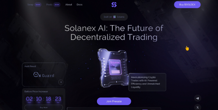 Dnes představíme projekt Solanex, revoluční AMM DEX (automatizovaný market maker decentralizovaná burza) na Solaně. Využívá AI k vybudování nové generace decentralizované obchodní zkušenosti, jejímž cílem je využít jedinečné funkce Solany a zlepšit oblast DeFi pomocí technologií umělé inteligence. Na rozdíl od jiných burz na Solaně, Solanex implementuje systém umělé inteligence, který zvyšuje obchodní efektivitu a tím snižuje náklady na výměnu pro obchodníky, poskytuje poskytovatelům likvidity dvojnásobné výnosy a zlepšuje uživatelskou zkušenost.