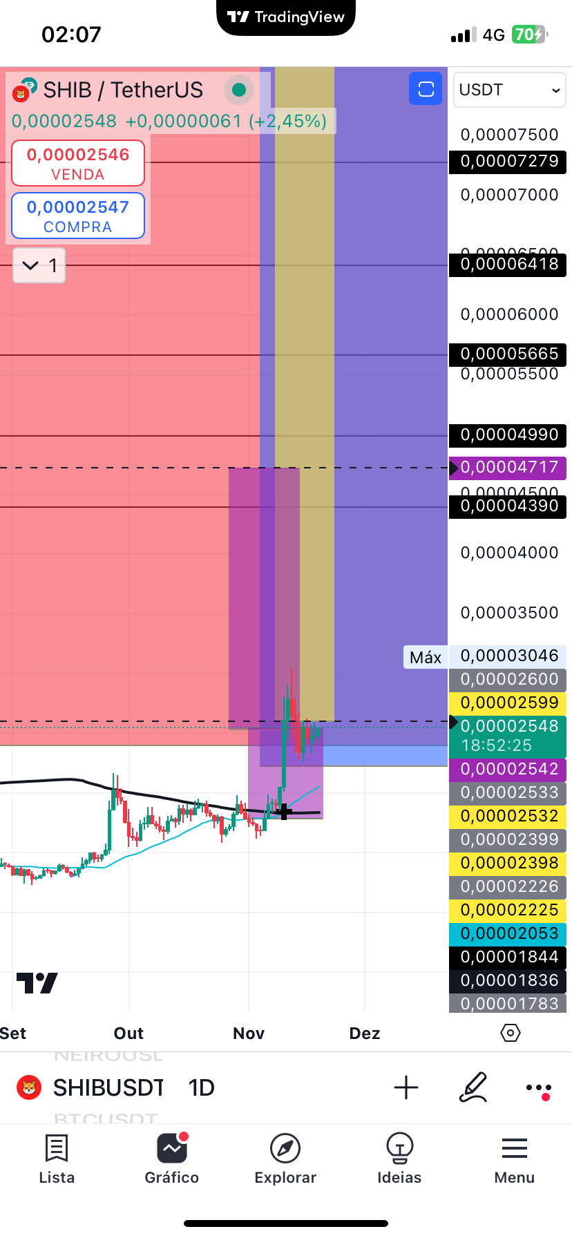 2. Uptrend potvrzen: Na grafu se SHIB trvale pohybuje nad klíčovými klouzavými průměry, což naznačuje silný vzestupný trend. Technické ukazatele navíc ukazují, že cena se chystá dosáhnout nových maxim s cíli stanovenými v blízkých zónách odporu.