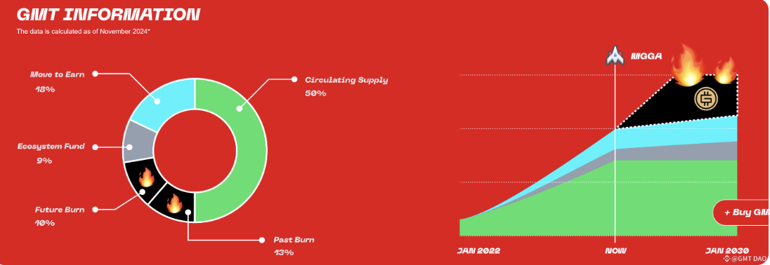 Tato distribuce a mechanismus spalování tokenů pomáhá zvyšovat vzácnost a dlouhodobou hodnotu GMT, dále kontroluje množství prostřednictvím BURNGMT plánu a zvyšuje tržní potenciál tokenu.