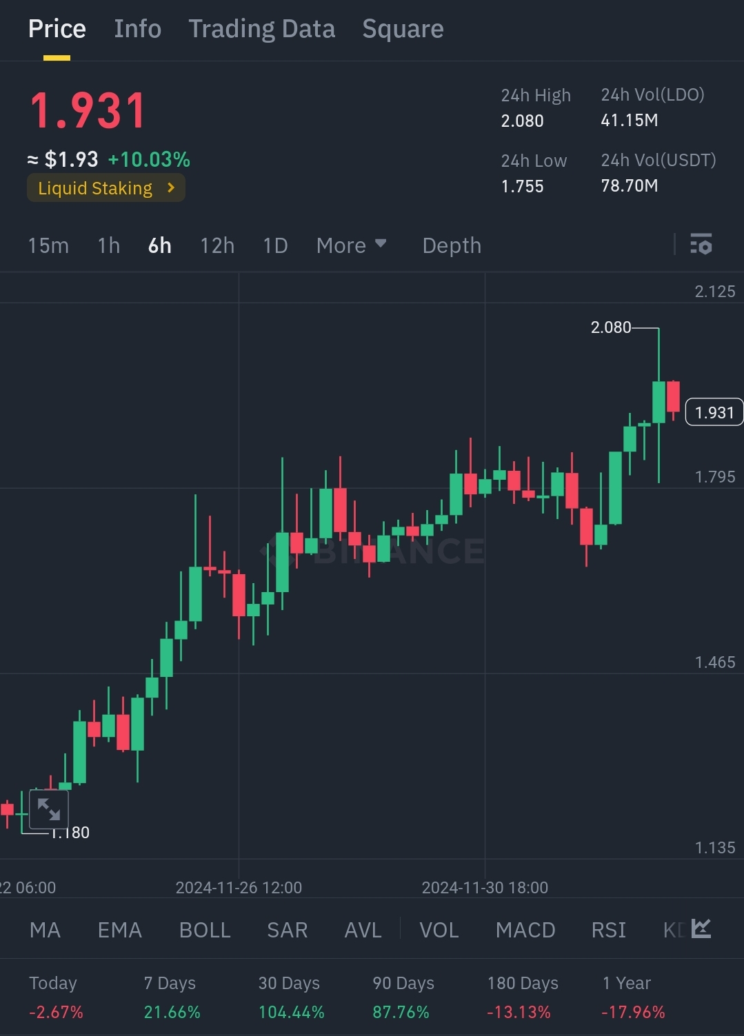 Tržní zotavení také přispělo k vzestupné trajektorii LDO, kdy altcoiny těží z lepšího sentimentu a zvýšené obchodní aktivity. Rostoucí inflace a ekonomická nejistota přivedly více investorů k decentralizovaným finančním aktivům, čímž dále podporují poptávku po LDO.