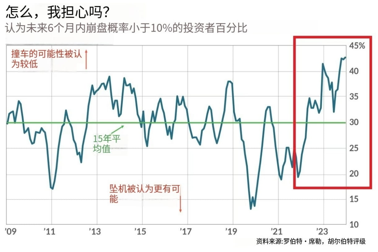 6.43% osobních investorů se domnívá, že v následujících 6 měsících nedojde k pádu trhu, což je nejvyšší podíl, jaký byl kdy zaznamenán, a s oživením trhu se tento podíl za pouhé 2 roky zdvojnásobil, zdá se, že důvěra je na vzestupu (obrázek 3).