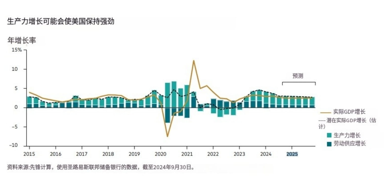Pioneer Group také uvedl, že růst produktivity může udržet USA silné (obr. 2).
