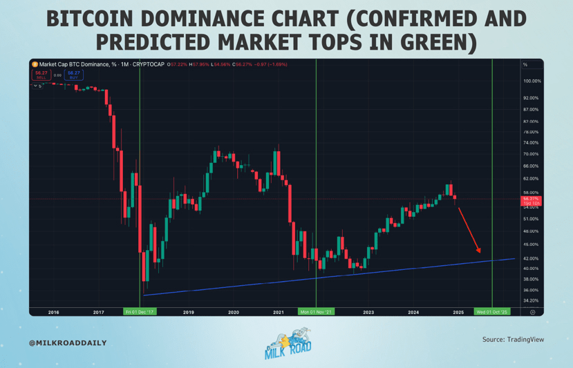 Podívejte se na zelené čáry na tomto grafu BTC.D: