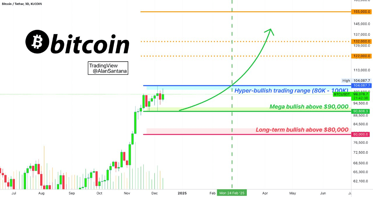 To je ono. Je to jako by 2025 byla dveřmi a my jsme přímo před nimi, prosinec 2024. Klepeme na dveře býčího trhu a ještě tam nejsme, nejsme na býčím trhu, ale býčí trh se už děje; vyšší maxima a vyšší minima.