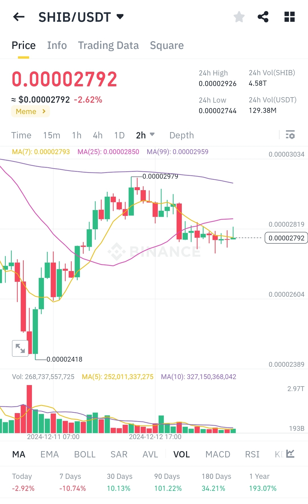 Nicméně po dosažení svého vrcholu cena zažila volatilitu, kterou do značné míry ovlivnily tržní korekce a měnící se sentiment v kryptoměnovém prostoru. K prosinci 2024 se SHIB obchoduje kolem 0,000028 $, což odráží jak pokračující spekulativní zájem, tak výzvy při udržení dřívějších maxim.