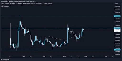Cena Shiba Inu se aktuálně obchoduje na úrovni 0,000028 USD po poklesu o 8 % za poslední týden, podle CoinMarketCap. Tento meme coin je jedním z nejvíce rostoucích mincí v této býčí tržní fázi, nedávno vzrostl nad 0,00003 USD. S aktuálním cenovým vývojem naznačujícím možnost obratu, známý kryptoměnový analytik, identifikovaný jako 'The CryptoBull', předpověděl, že Shiba Inu by mohl dosáhnout nového historického maxima v tomto býčím cyklu.