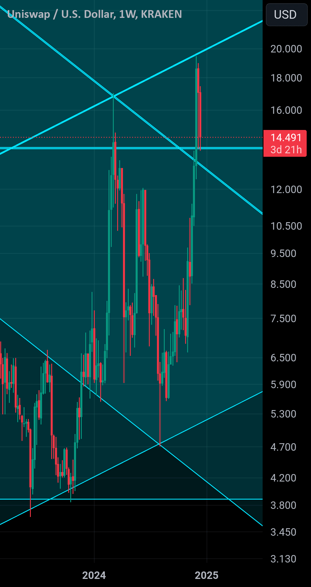 Na základě týdenních a 12denních grafů, po průlomu další rezistenční linie, není nic až k dalšímu klesajícímu kanálu, který je aktuálně na 40 USD.