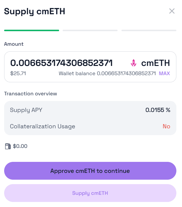 2. Půjčte si libovolnou částku cmETH nebo FBTC.