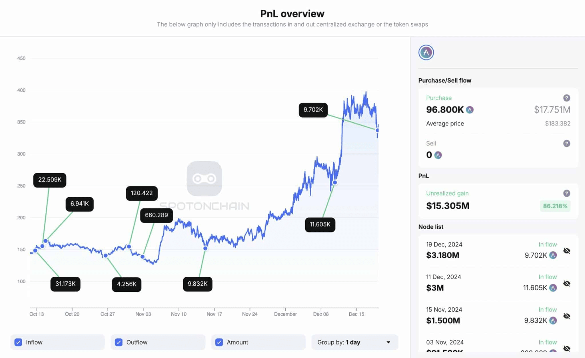 Další obchodník, '0xfcc5', reinvestoval 1,4 milionu dolarů, přičemž dosáhl návratnosti 3,2 až 3,3 krát a nyní ovládá 963 000 AAVE v hodnotě 331,60 milionu dolarů.