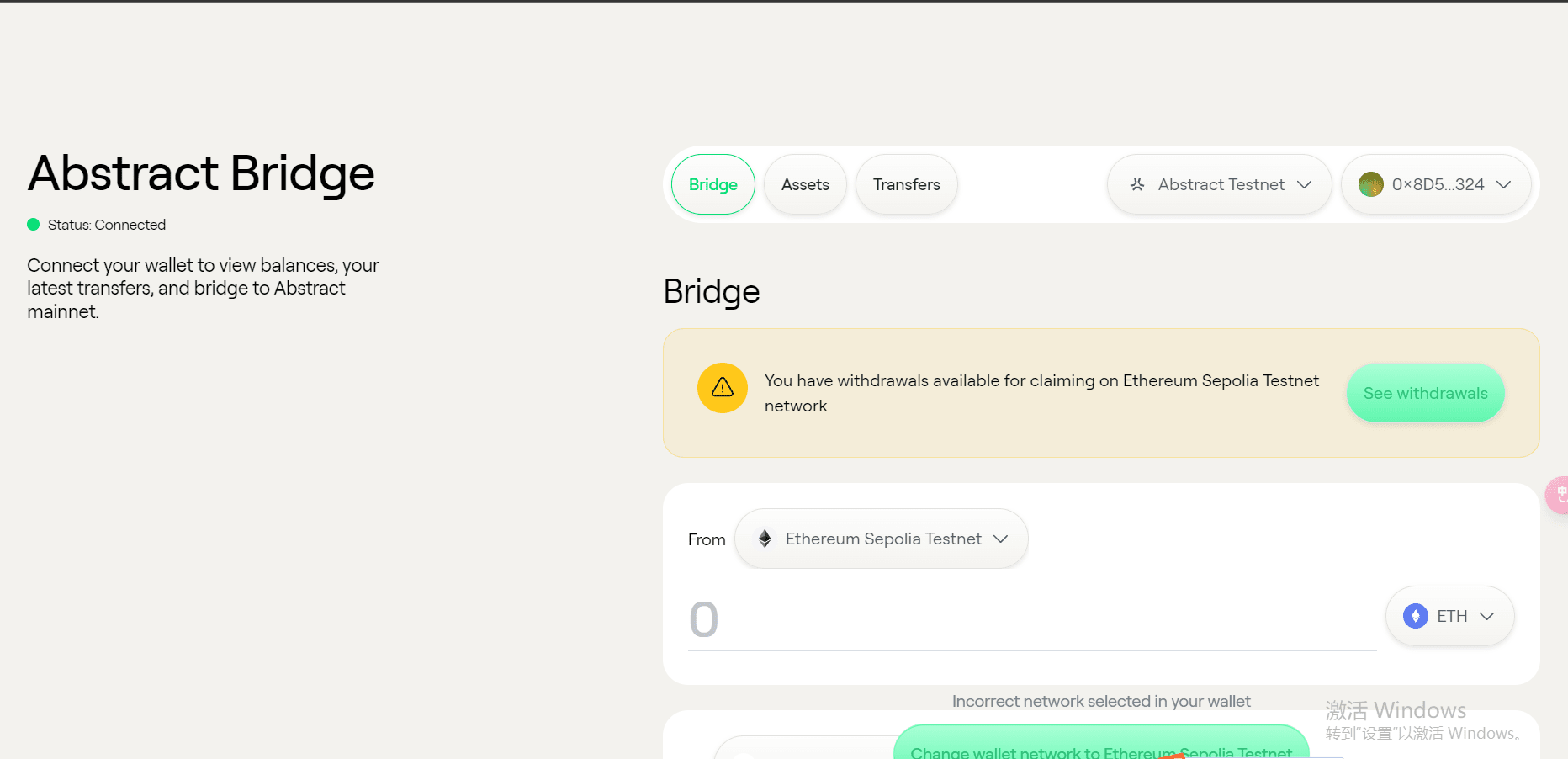 https://portal.testnet.abs.xyz/bridge/