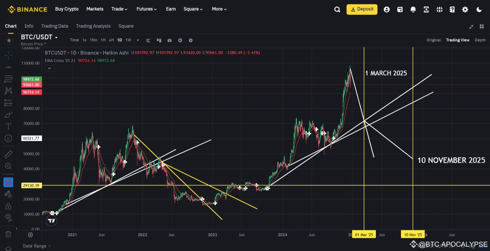 Od 1. března 2025: #Bitcoin klesne na přibližně 60 500 $ až do května.