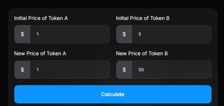 Krok 2: Vypočítejte dočasnou ztrátu. Kalkulačka automaticky určí odpovídající procento dočasné ztráty na základě změny ceny.