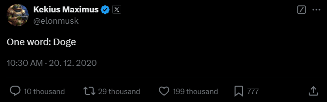 Elon Musk, kterého na X sleduje více než 234 milionů lidí, má na trhu s kryptoměnami velký vliv. Stejně jako jeho tweety o dogecoinu v roce 2020 vedly k jeho meteorickému vzestupu v roce 2021, jeho nový zájem o Pepe Coin může ukazovat na podobnou cestu. Díky Muskově účasti dosáhl Dogecoin tržní hodnoty přes 47 miliard dolarů, což z něj dělá největší meme coin.