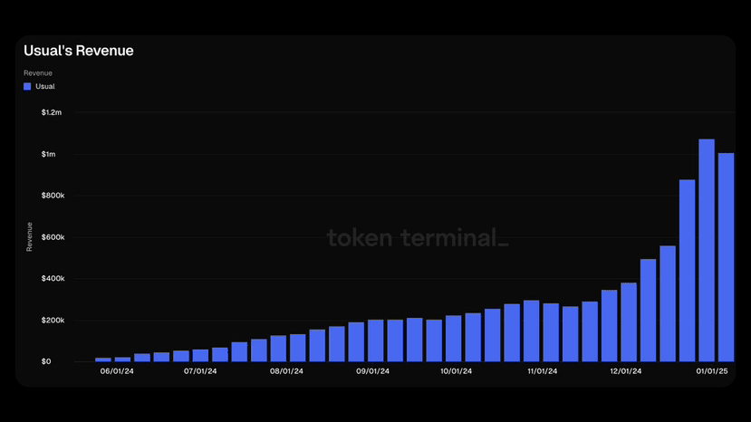Usual DAO vykázal impozantní růst, přičemž týdenní příjmy nyní přesahují 1 milion dolarů k lednu 2025. Podle dat se příjmy platformy od poloviny roku 2024 stabilně zvyšují.