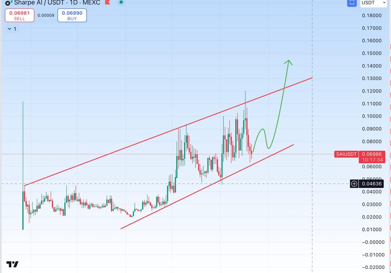 Denní graf Sharpe AI ( #SAI ) v současnosti trenduje v rostoucím kanálu, ukazuje stabilní růst. 📈