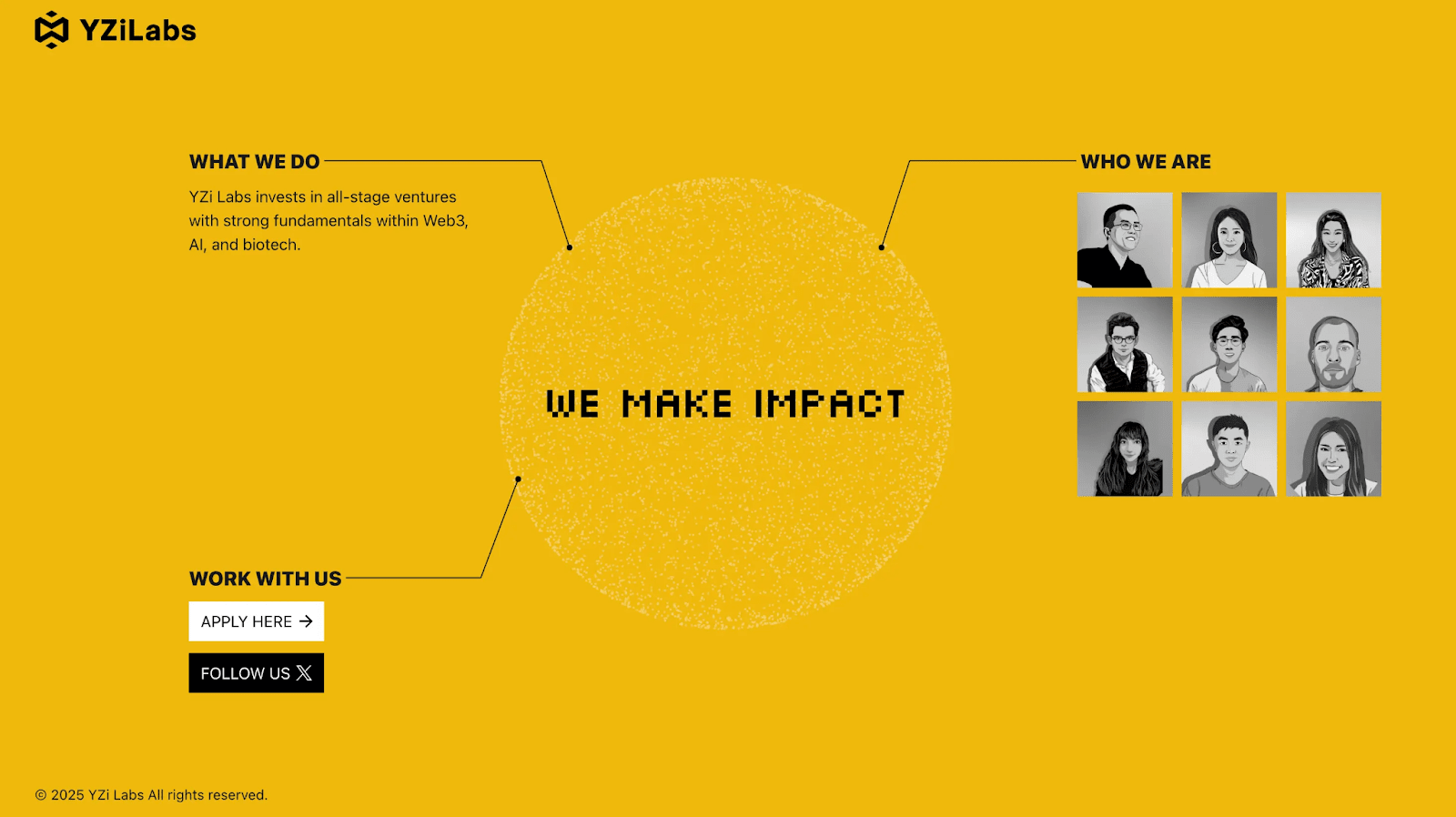 YZi Labs (dříve Binance Labs) je investiční fond specializující se na rizikový kapitál, zaměřující se na web3, umělou inteligenci (AI) a biotechnologii (biotech). Přechod z Binance Labs na YZi Labs znamená významný krok vpřed v nezávislém fungování, rozšíření rozsahu investic nad rámec blockchainu a potvrzení její pozice jako investiční instituce s dlouhodobou strategií.