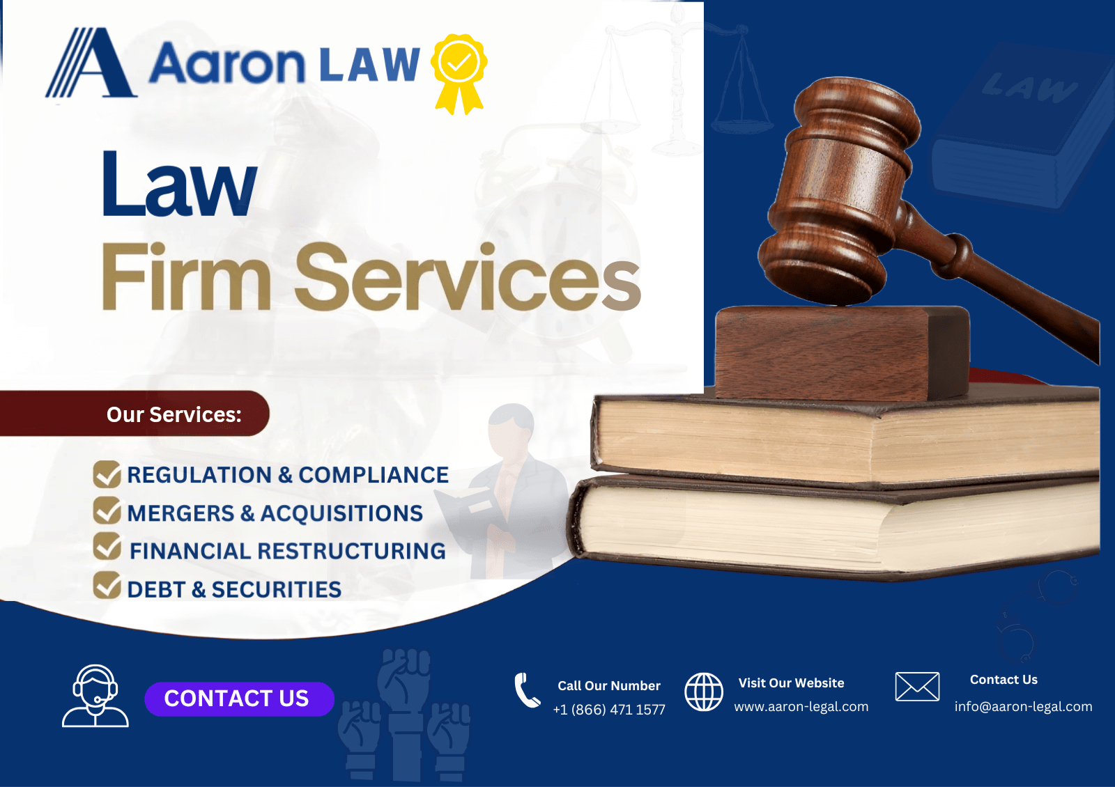 Se sídlem ve Spojených státech je Aaron Law důvěryhodným partnerem pro podniky a jednotlivce, kteří hledají odborné právní poradenství. Posláním firmy je posílit klienty strategickým právním poradenstvím, které podporuje úspěch při dodržování nejvyšších standardů integrity a profesionality.