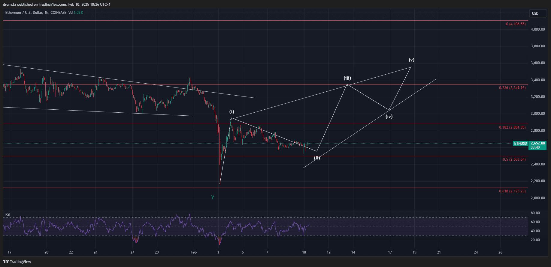 Pokud Ethereum bude pokračovat v *konsolidaci nad 2,500*, mohli bychom se dívat na *býčí průlom*. 👀 Teorie *Elliott Wave* naznačuje, že cena by mohla být v počátečních fázích *vzestupného trendu* s dalším cílem možná *2,800 až 3,000*. To by se shodovalo s *5. vlnou* cyklu Elliott Wave, která obvykle označuje silný pohyb směrem nahoru.