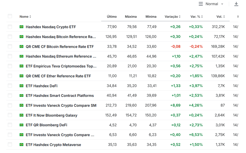 Krypto ETF se pohybují 150 milionů R$ denně na B3.