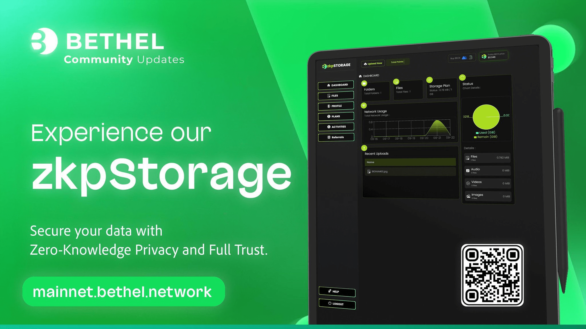 Jelikož jsem platformu Bethel používal rozsáhle, mohu s jistotou říci, že to není jen další řešení úložiště—je to revoluční přístup k soukromí a bezpečnosti dat. Ať už jste podnik, který se snaží chránit finanční záznamy, lékařská data, duševní vlastnictví nebo decentralizované aplikace (DApps), Bethel poskytuje bezkonkurenční šifrování, ověřování s nulovou znalostí a bezpečnost integrovanou s blockchainem.