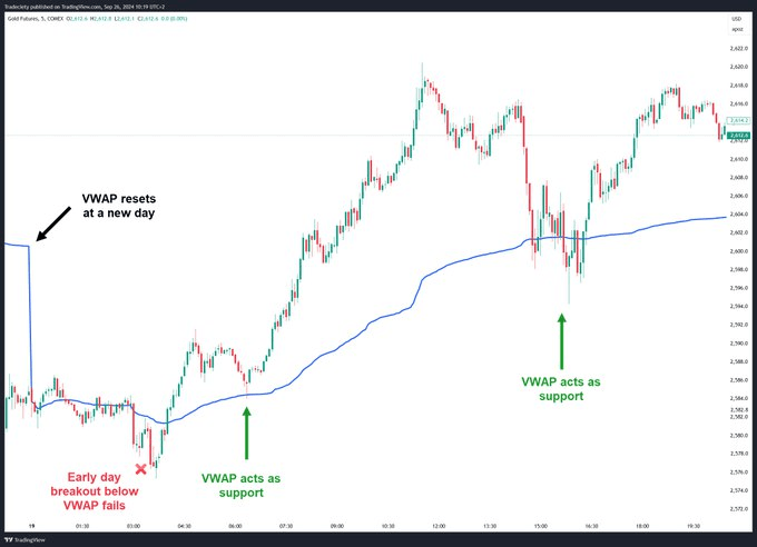 ✅ VWAP (Objemově vážená průměrná cena) ukazuje průměrnou cenu váženou objemem, používanou institucemi k posouzení spravedlivé hodnoty